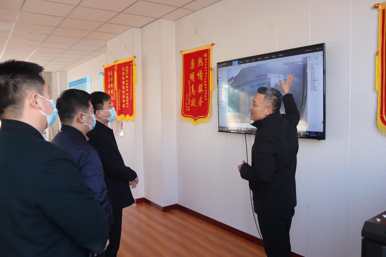在视频监控室内,海昌水产有限公司董事长马松鹏向检查组详细介绍了专仓的运行管理状况以及特殊情况的应急处置流程。随后,王举文副书记又细致询问了专仓运行中的一些管理细节,马松鹏董事长一一作了讲解。
